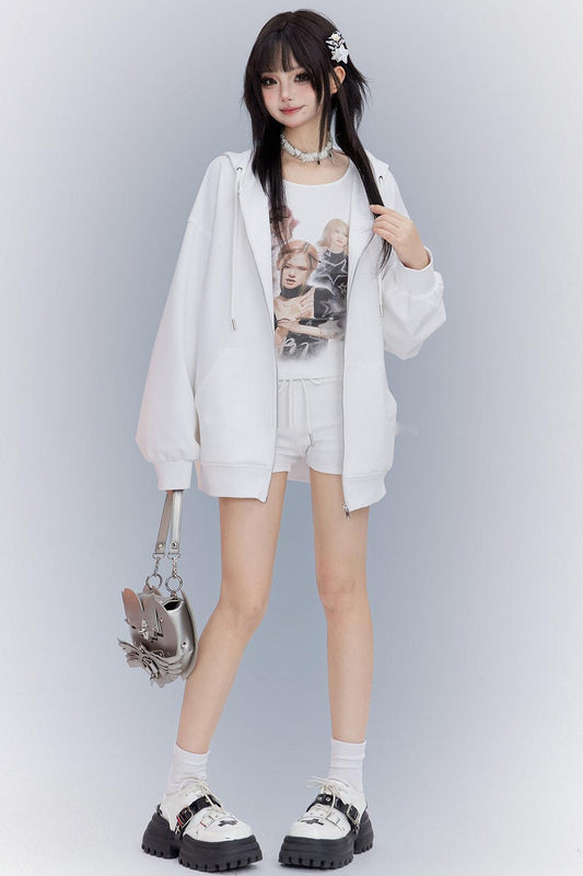 シアーボーダーラビットフードパーカー+ナンバーロゴタンクトップ