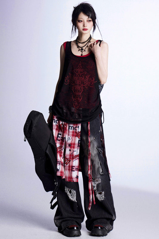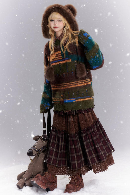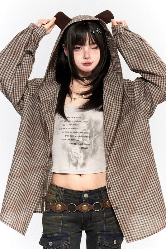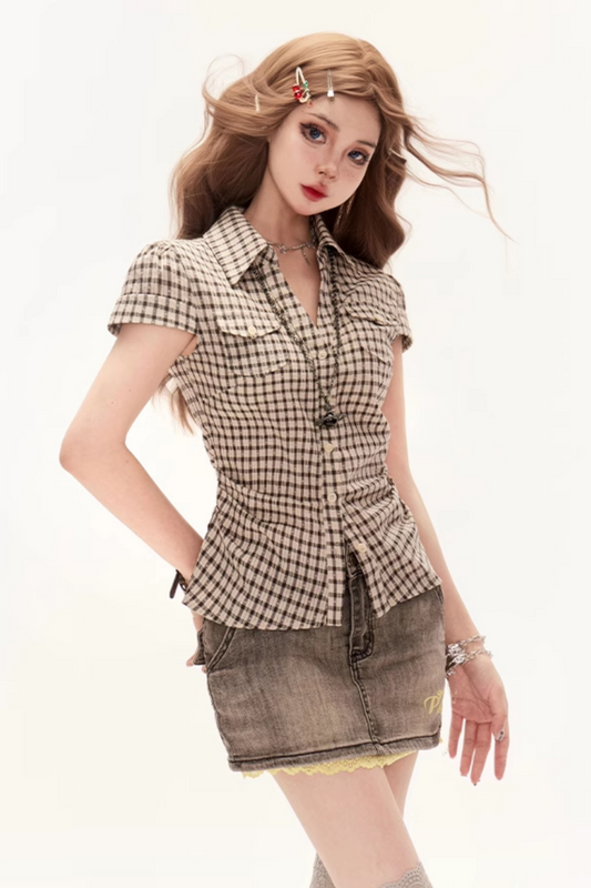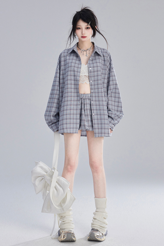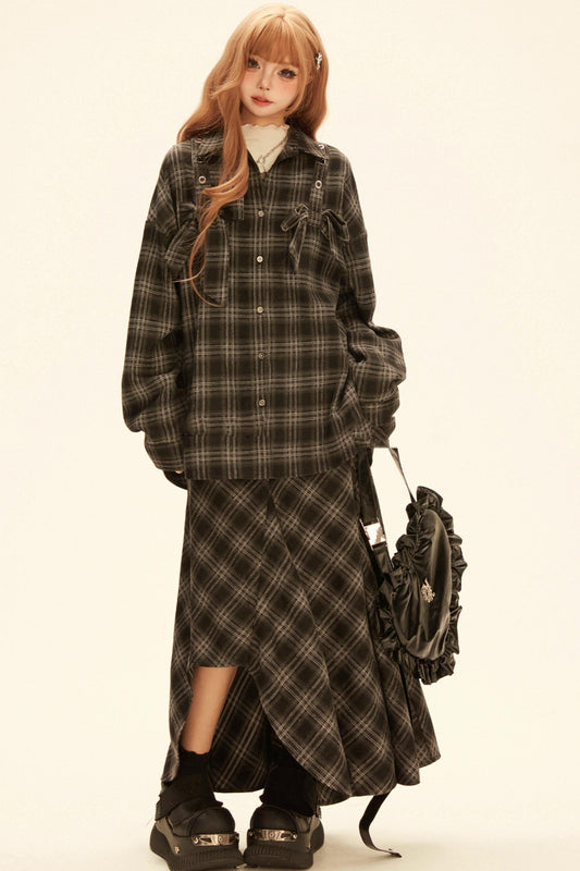 ヴィンテージチェックオーバーシャツ+チェックショートスカート