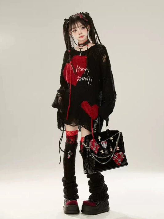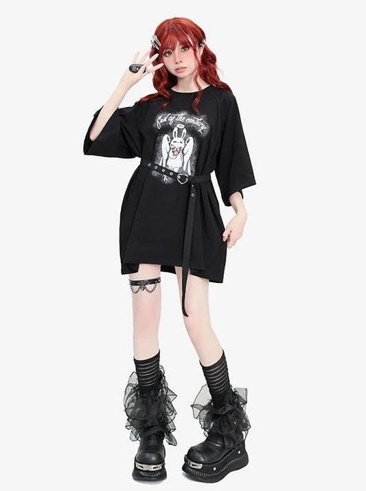【予約商品】オフショルダースリット ルーズパンク Tシャツ