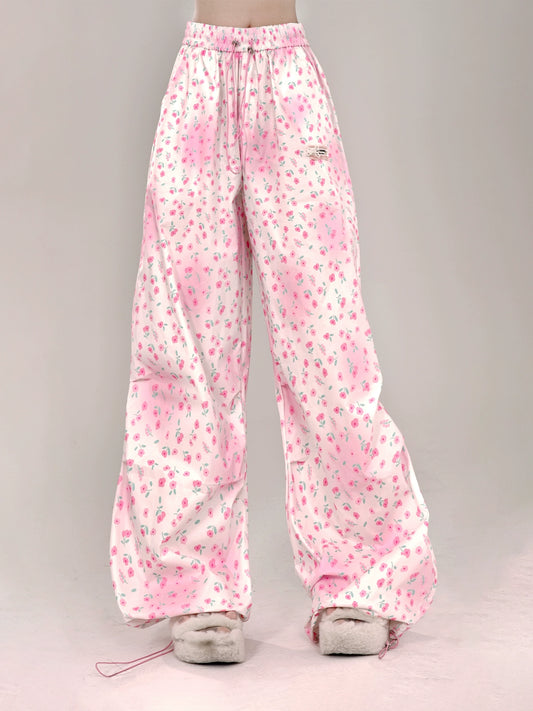 フローラルグラデーションスモールフレアルーズカジュアルパンツ