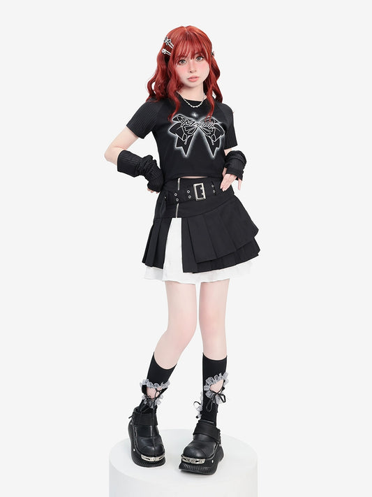 【予約商品】ダークベアベルトネックダメージショートトップス