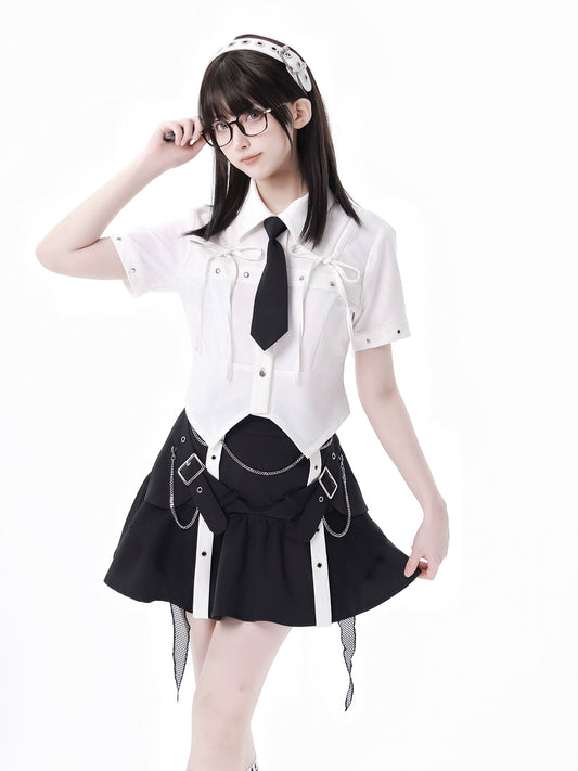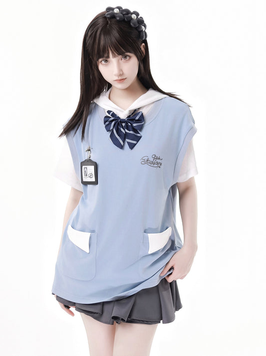 カレッジショートベストシャツ+ベストパーカー+キュロット