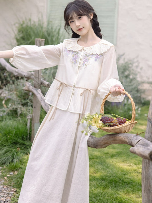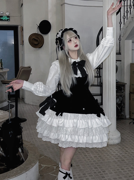 ドールボンネットロリータドレス+シャツ+ショートジャケット+リボン