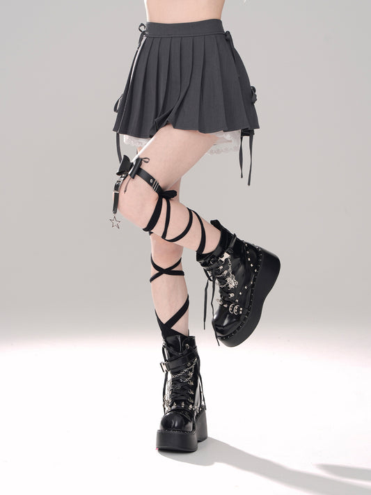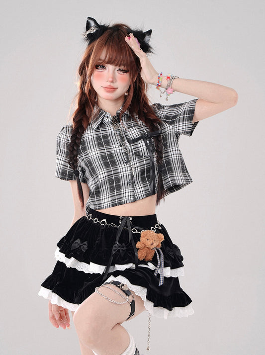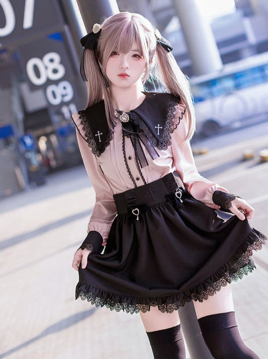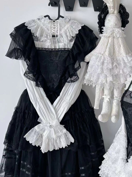【予約商品】レースブラックジャンパースカート+トップス+チョーカー+スリーブ