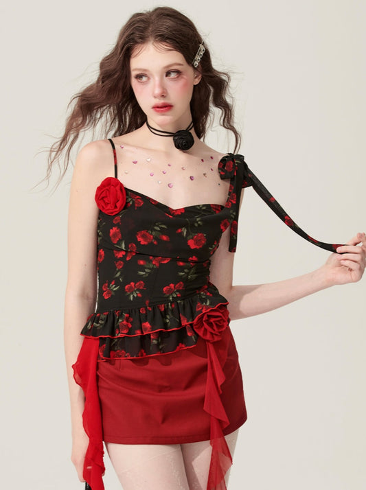 【予約商品】アイズ ローズブレイジングシャドウ ブラックサスペンダー トップス