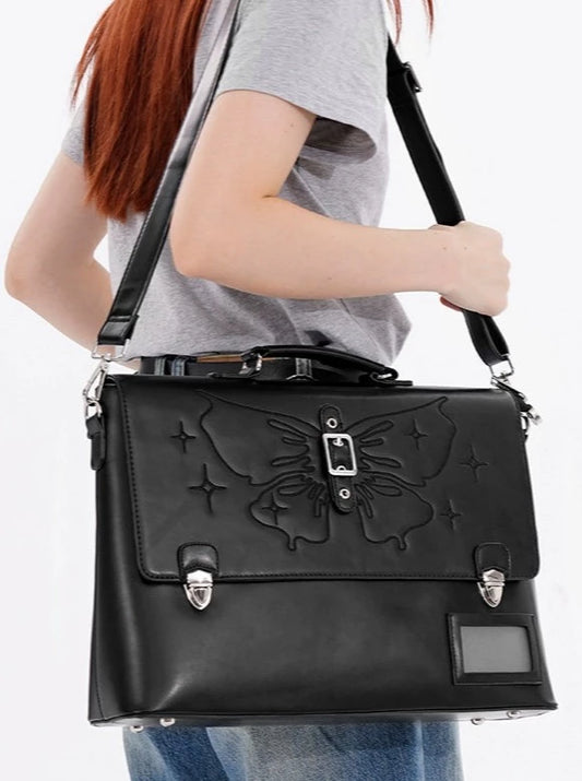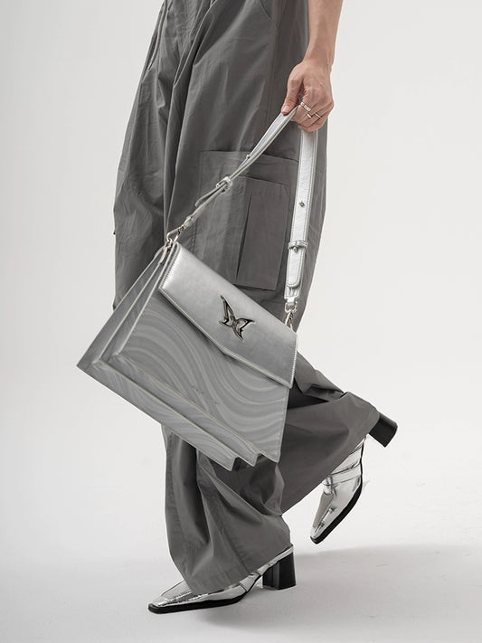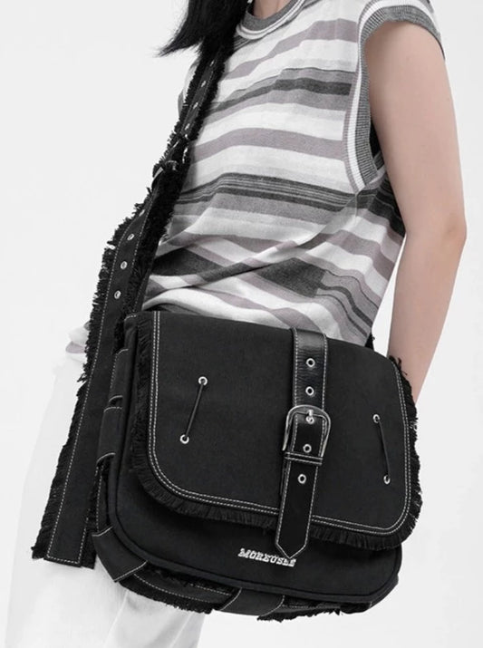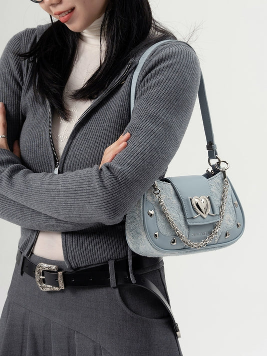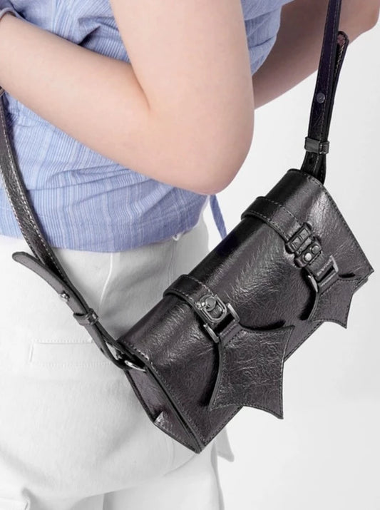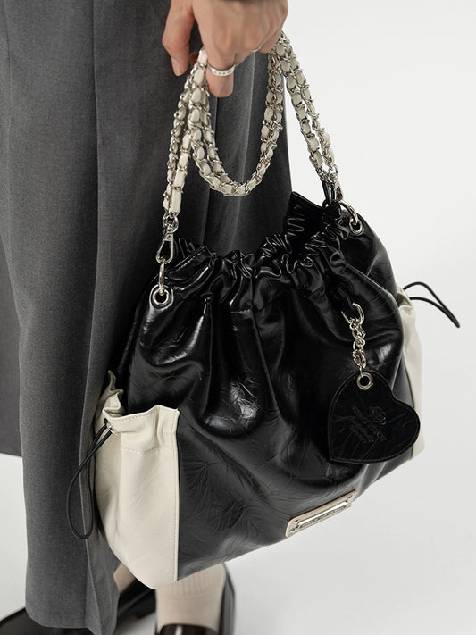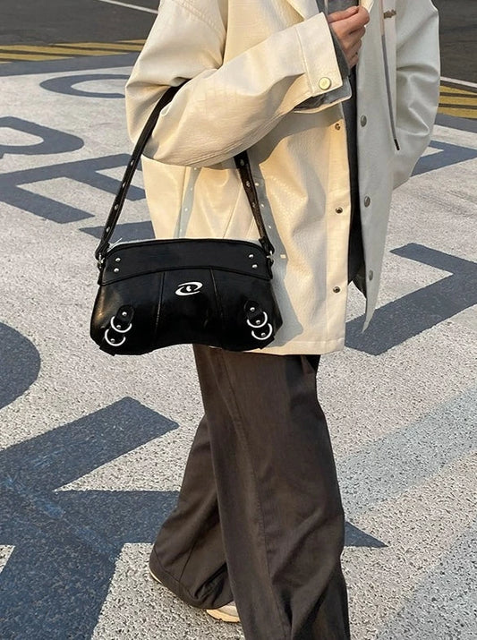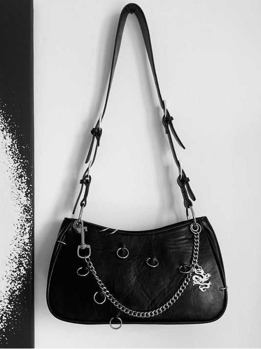 レトロパンクメタルリングチェーンオイルワックスレザーバッグ