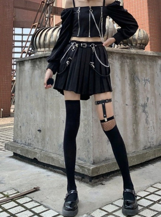アシメフィッシュネットニーハイソックス+ガーターベルト