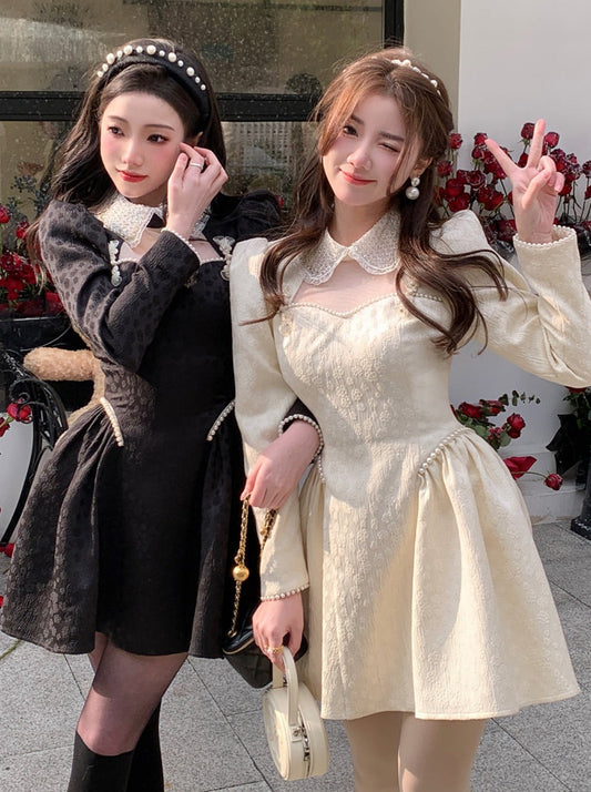 エレガントヘビーデューティーパールビーズスカートワンピース