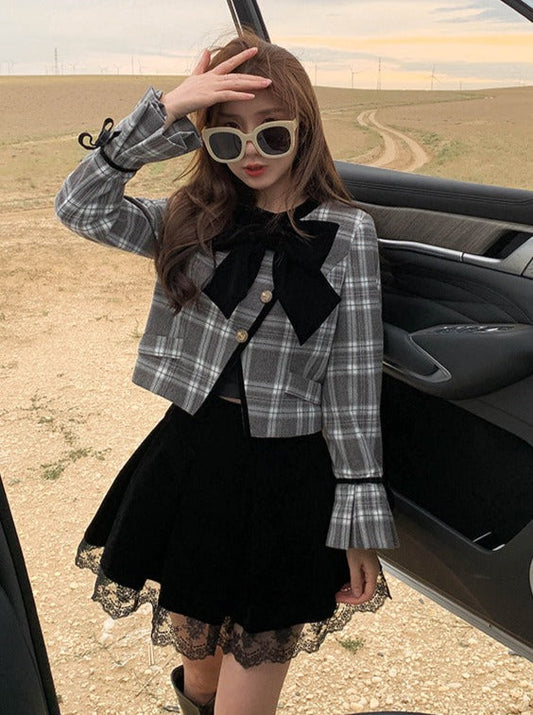 フレンチピュアデザイアリボンスリーブトップハイウエストショートスカートセットアップ