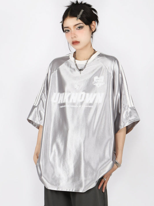 アメリカンレトロカラーコントラストラグランスリーブオーバーサイズTシャツ