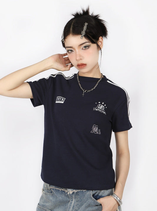 アメリカンレトロコントラストカラーラグランスリーブスリムショートTシャツ