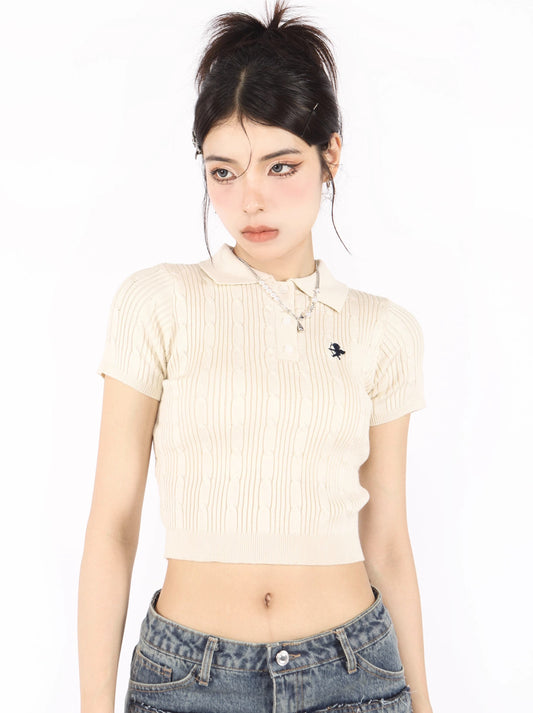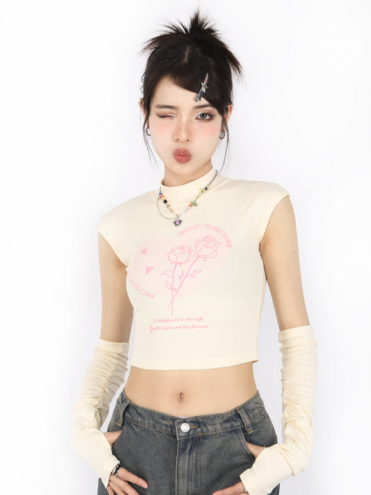 アメリカンレトロスリーブ付きローズショートフレンチTシャツ