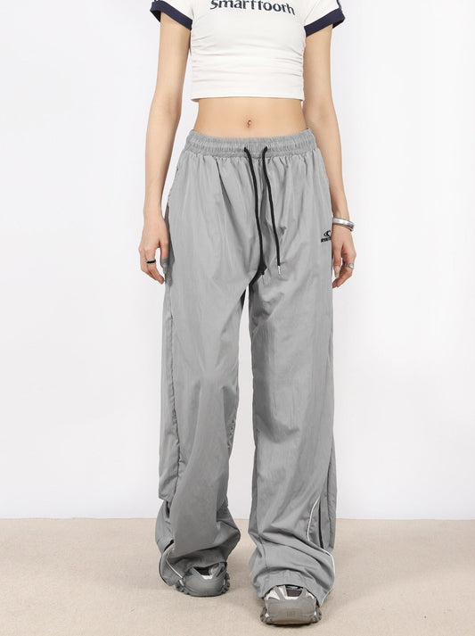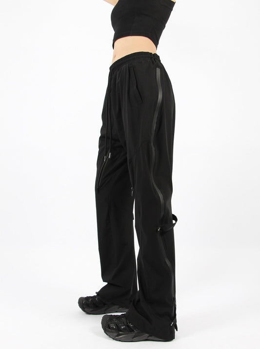ジップスリットカジュアルデザインワイドレッグパンツ