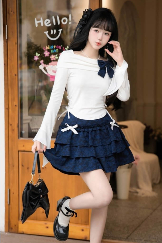 • ピュアガーリースタイルコート+シャツ+ファーカラー+スカート