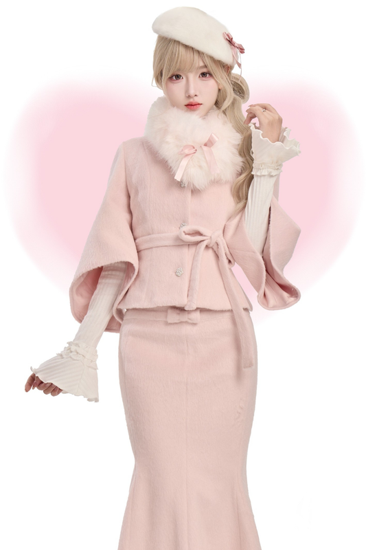 ベルベットラブソングニット+ウールショートジャケット+マーメイドスカート