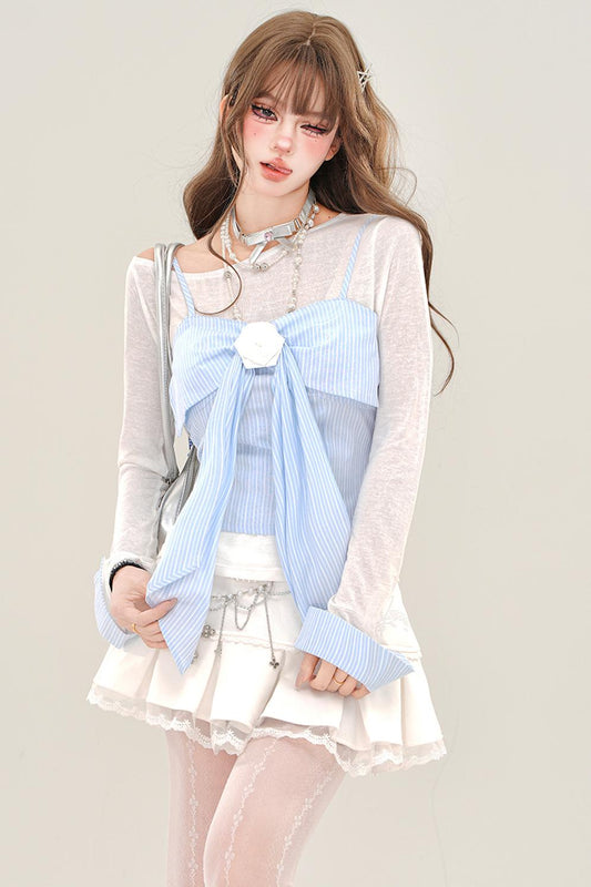 ベリーフレンチリボントップス+ホルターネックキャミソール+ケーキリボンスカート