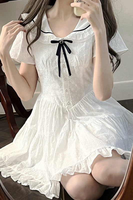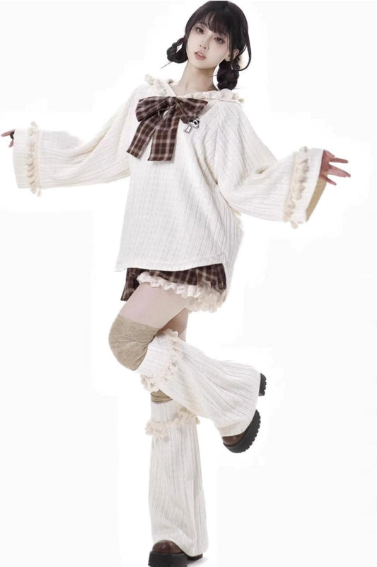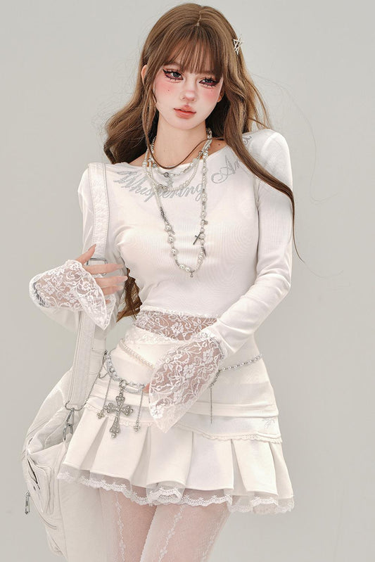フレンチグレーシュガーミルククリームホワイトセーラートップス+タイトミニスカート