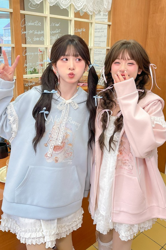 ラビットフードパーカー+リボンキャミソール+ドットスカート