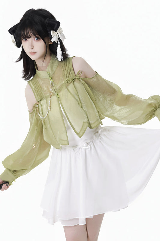ホワイティガーリーホルタードレス+オフショルダークロップドトップス
