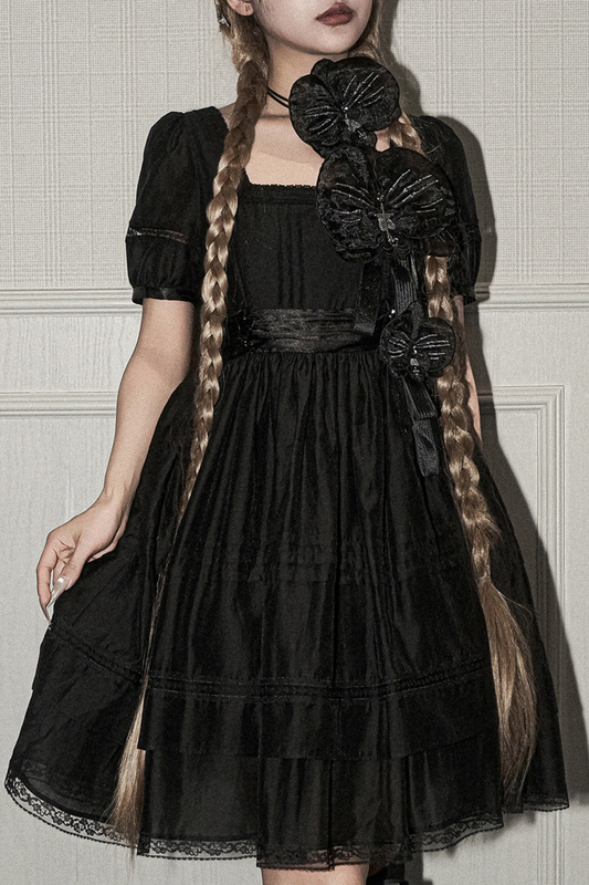 ゴーストドールスクエアネックロリータドレス+コサージュ