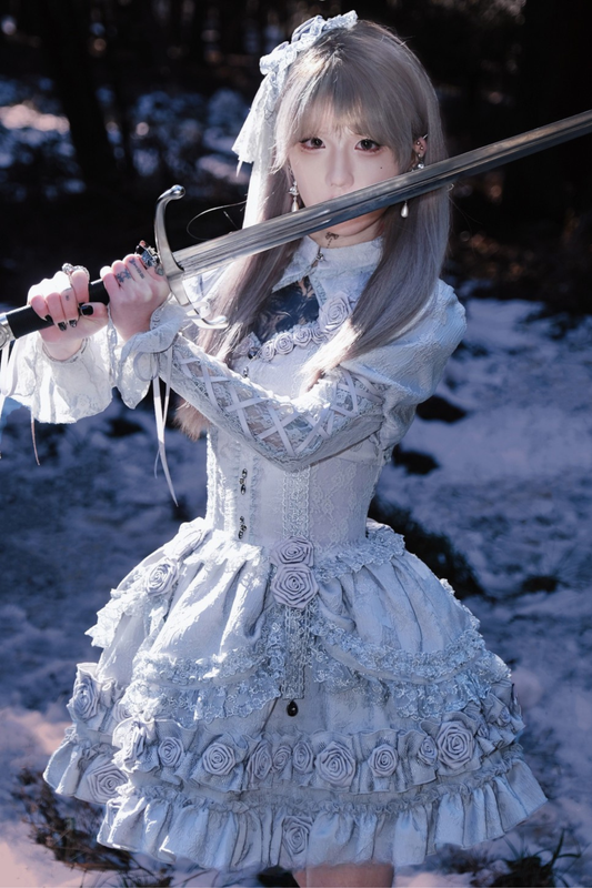 【2月23日予約締切】ドーンブレイカーゴシックフリルスタンドカラージャカードリボンシャツ