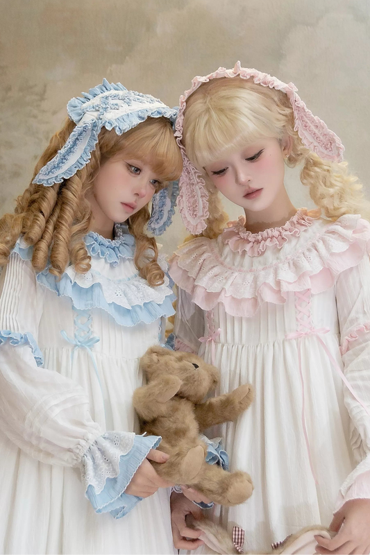 ラビットツインブルーロリータドレス+ラビットヘアバンド