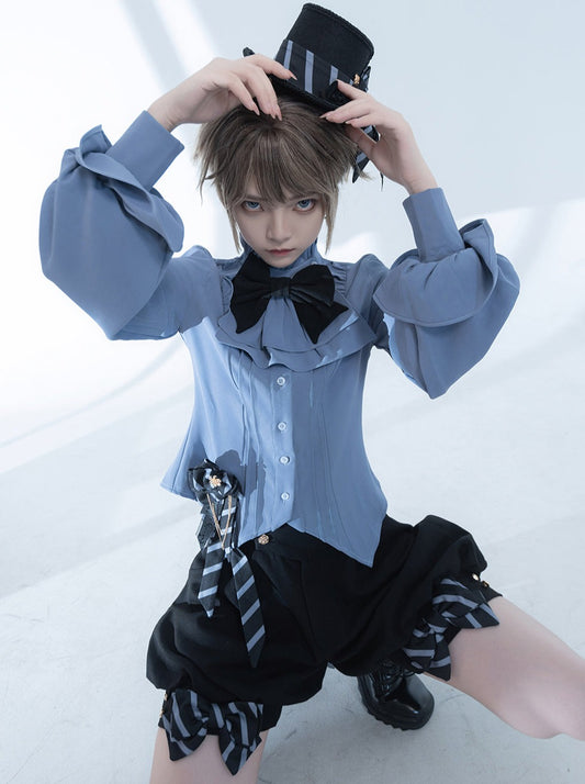【予約商品】レトロエレガントダークキュートプリンスリボンシャツ+テールショートパンツ
