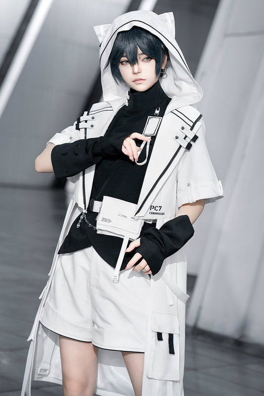 ラビットレトロダーククールうさ耳フーディーセットアップ【ケープコート・ブラウス・ショートパンツ】