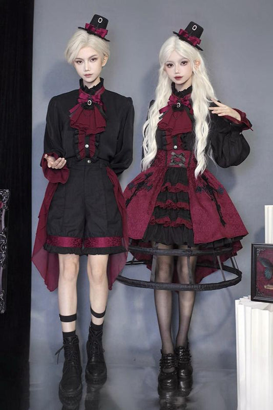 ナイトメアブラックレッドゴシックツインズプリンススーツ