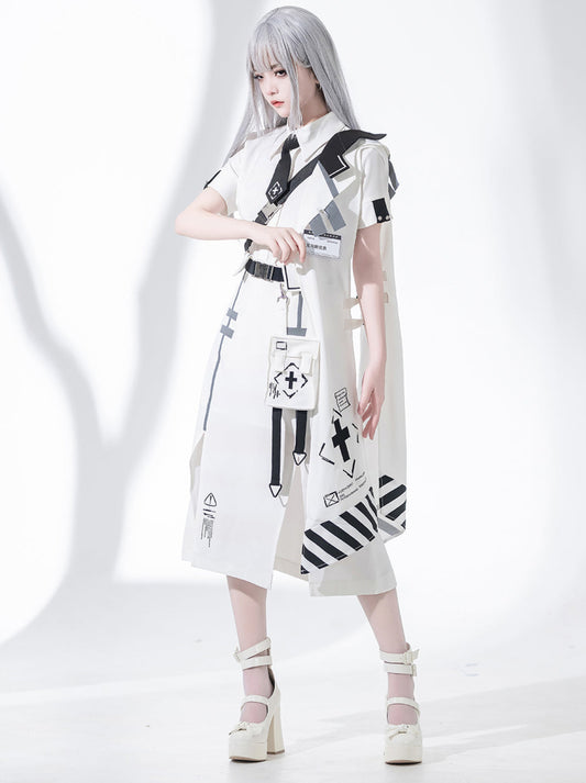 【予約商品】パンクスタイルダークゴシックドレス+ショートパンツ+ショール+スリーブ+ベルトバッグ