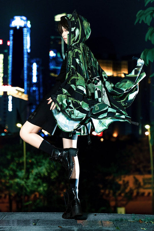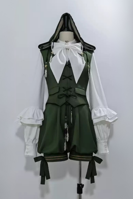 うさ耳フーディーベスト+ショートパンツ+ケープフェザーグリーンプリンスコーデ