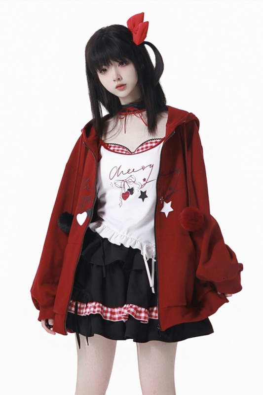 チェリーウィンドフードパーカー+キャミソール+スカート