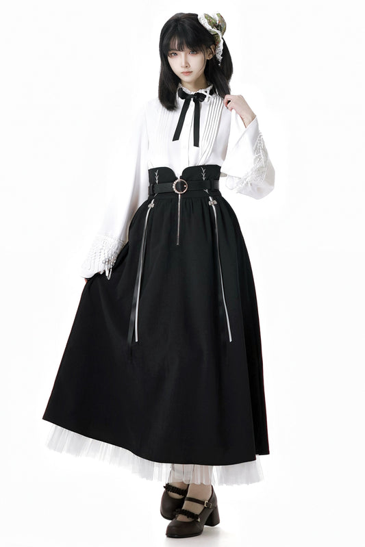 シフォンチャイナシャツ+キャミソール+ショートスカート+ロングスカート+レッグウォーマー