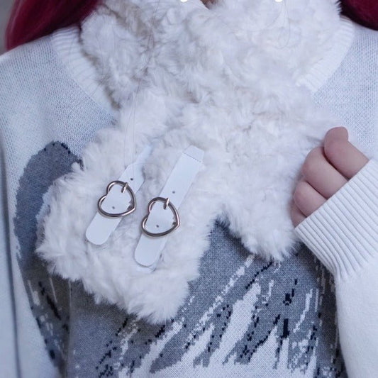 クロスモチーフチェーンリベットベルトフェイクファーレッグウォーマー