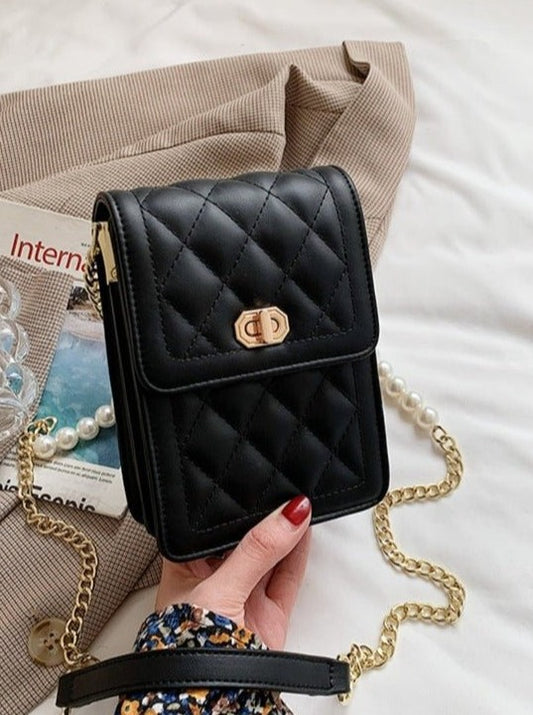クリアハートケース付きワンポケットチェーンストラップバッグ