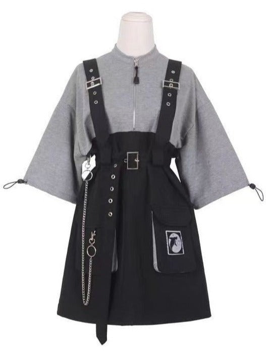 地雷バイカラースウェットワンピース+ウエストストラップベルト