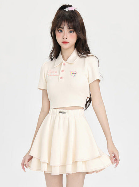 バックリボンショートポロカラーシャツ+バレエスタイルスカート