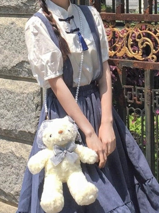サマーロリータサスペンダースカート+フリルドールシャツ