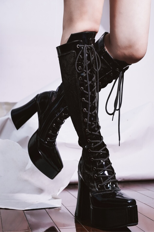 【12月19日予約締切】ポインテッドトゥゴシックロリータロングブーツ+ブラックレーススペシャルバージョン