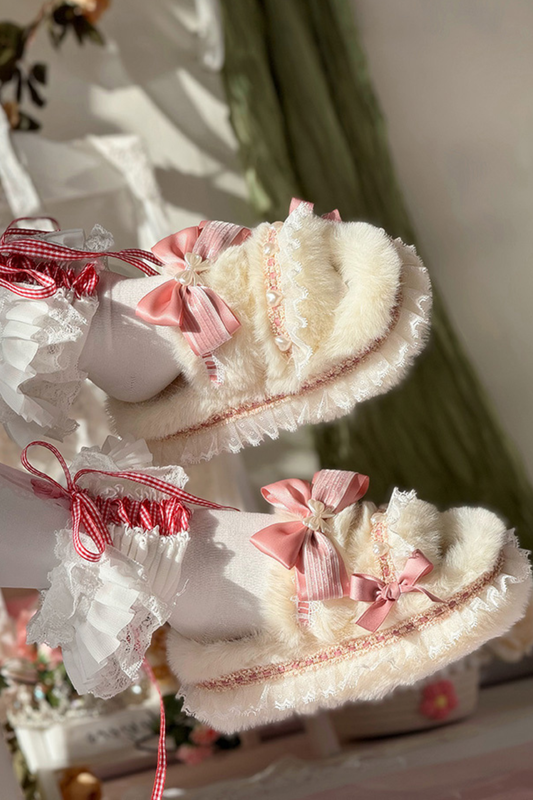 レイシープパフロリータレースラインストーンリボンフラットフォームシューズ