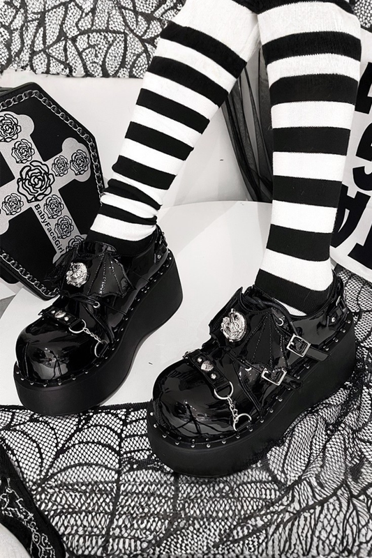 【12月8日予約締切】ブラックホワイトリボンエンジェルプラットフォームパンクサブカルスニーカー