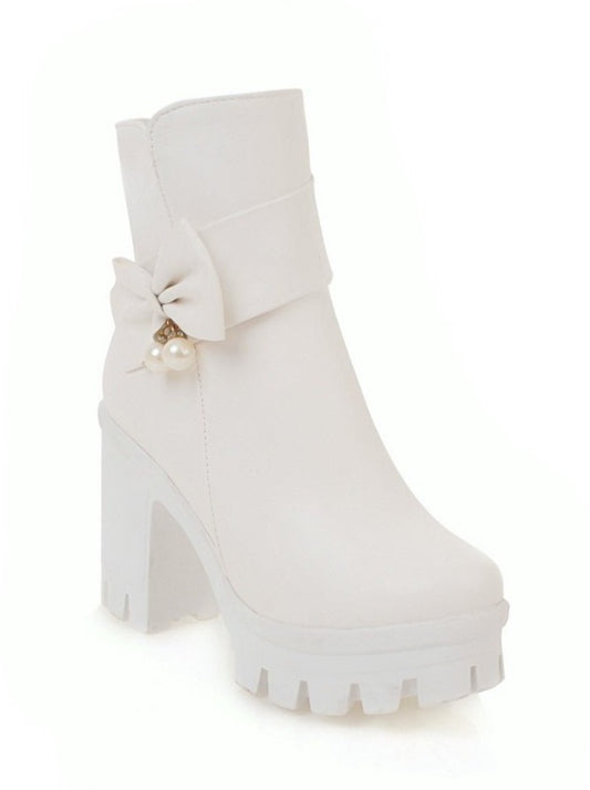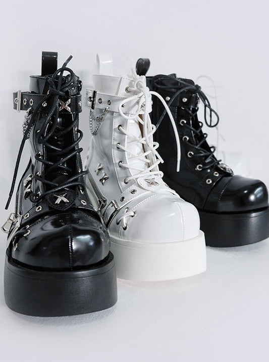 パンクラウンドトゥプラットフォームスターチェーンデザインブーツ