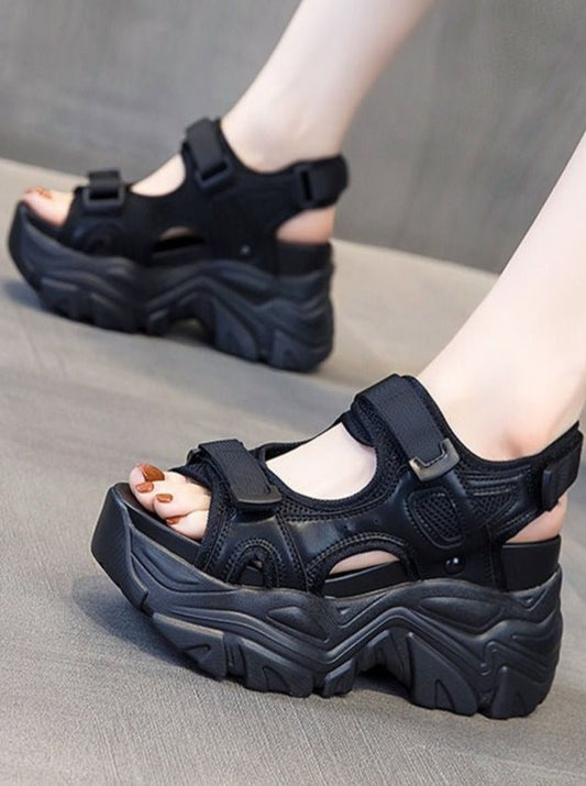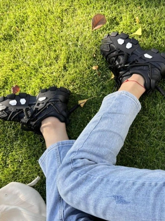 クールパンクレトロメタルベルクロストラップチャンキーパワーソールスニーカー