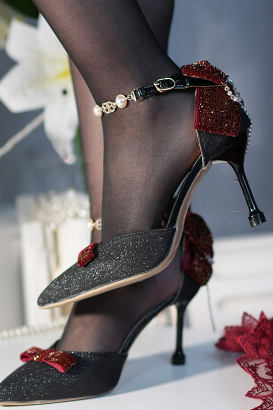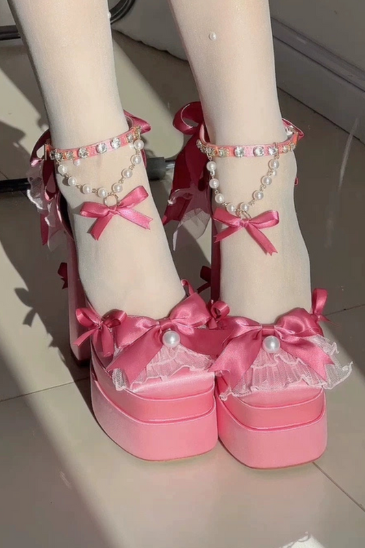 エレガントプリンセスリボンパールハイヒール