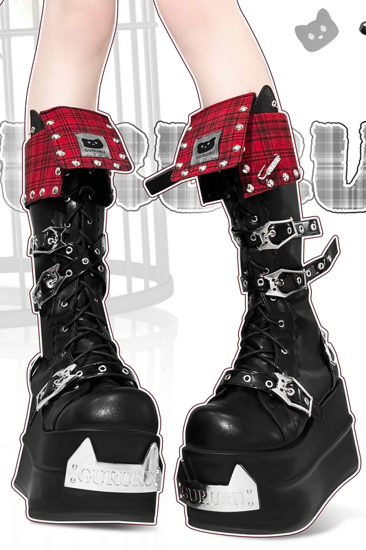 パンクロックチェックサブカルミデイアムブーツ