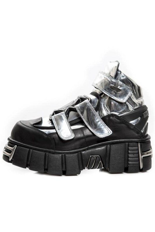 モードシルバーデザイン厚底シューズ