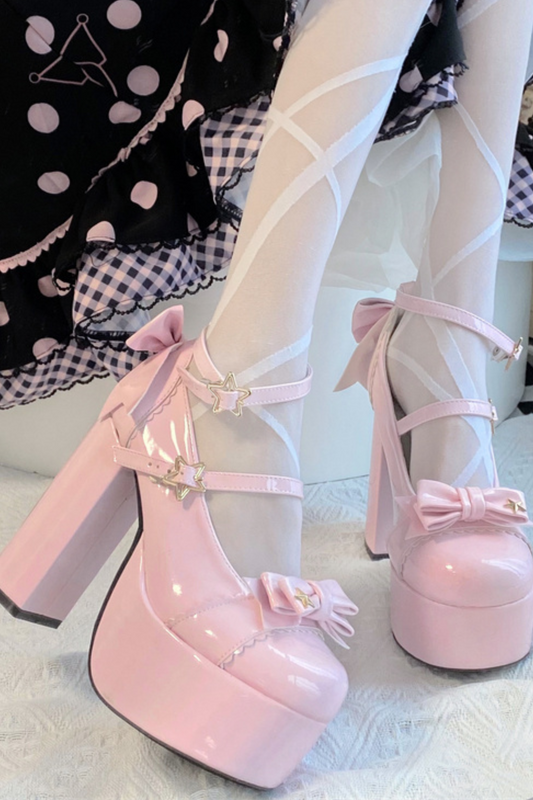 ストーンハートリボンプラットフォームシューズ