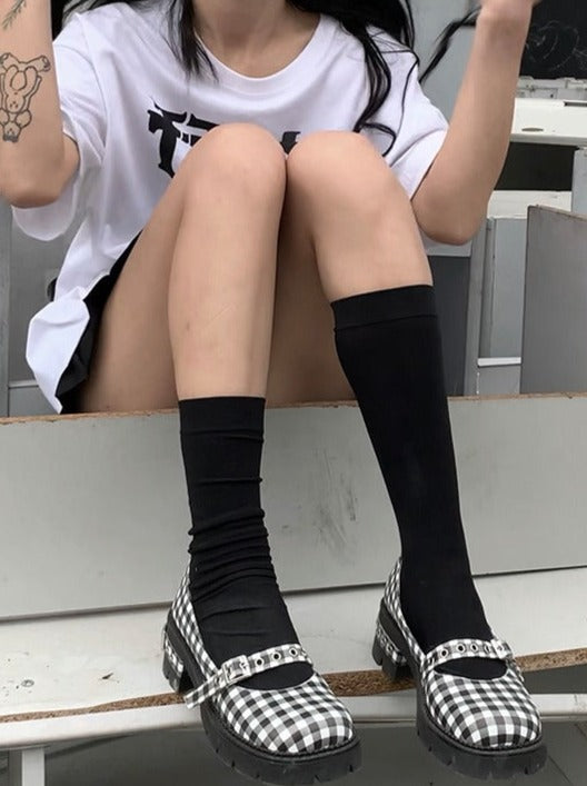レトロストリートダークパンクスタイルタンクソールハイカットシューズ