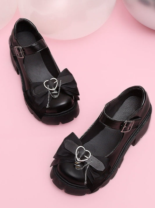 ダークブラックピーチハートリボンシューズ