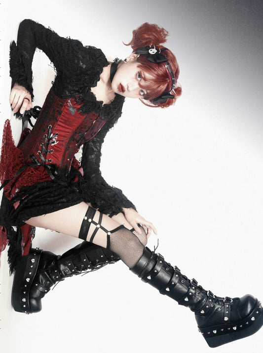 ダークY2Kホットガールベルトバックルプラットフォームシューズ
